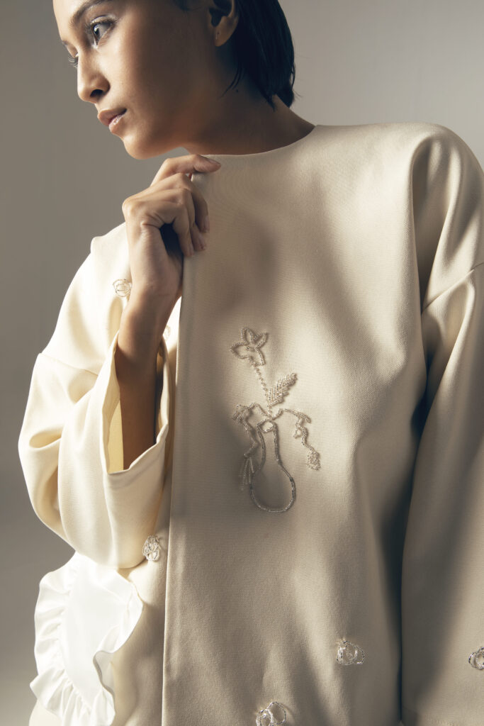 A whimsical collection that portrays a poetic sentiment of love, connection and serendipity, collaborated through SENSES’ delicate fabrication and Mote Mote’s handcrafted embellishments.
