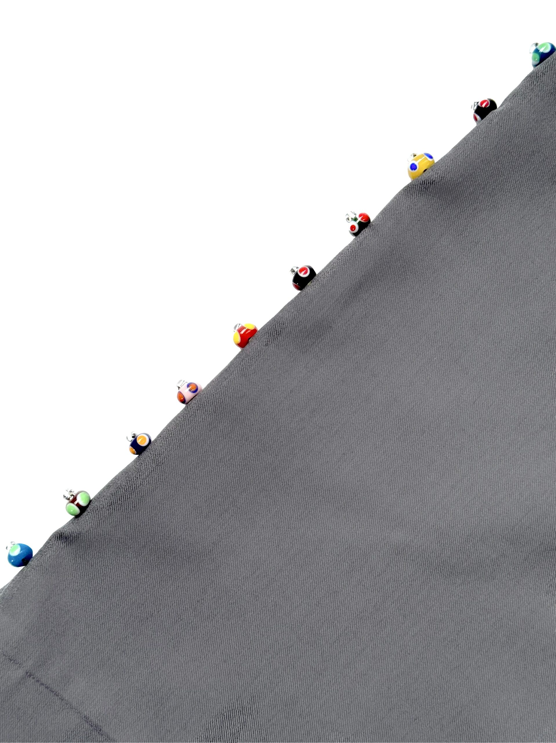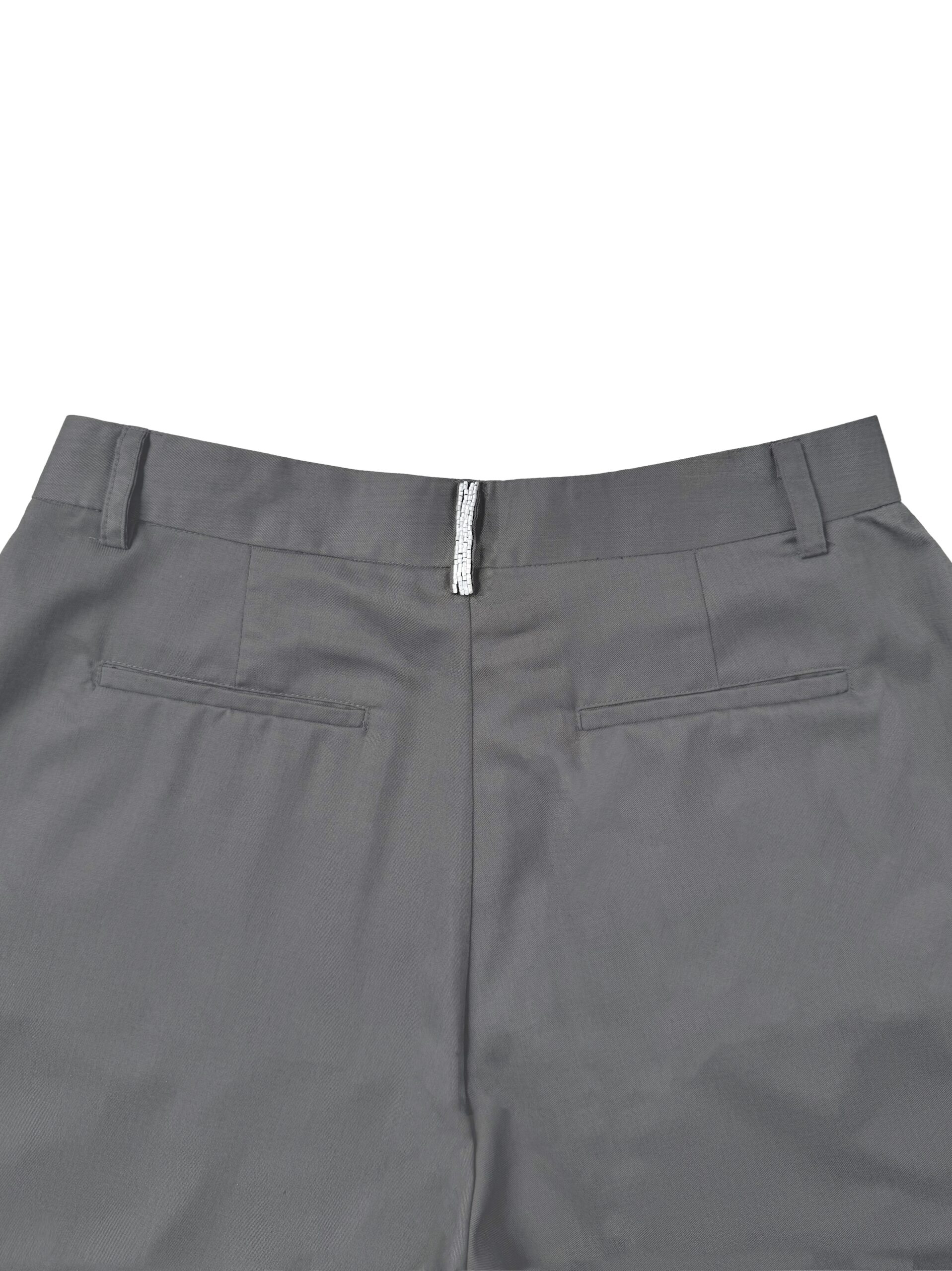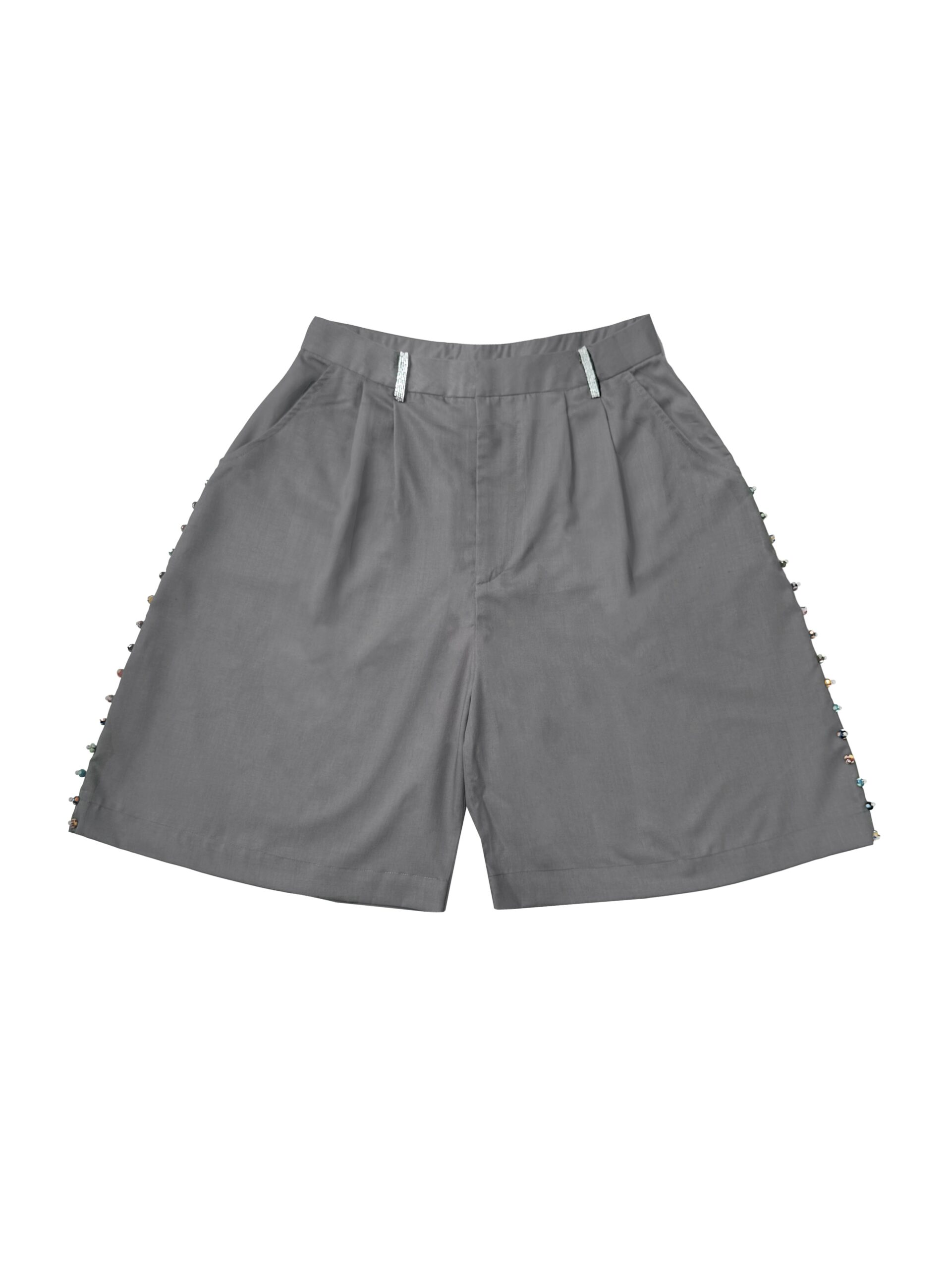 Wide-leg bermuda shorts constructed in mid rise length with belt loops, finished with hook, zip fly fastening and double front & back pockets. Adorned with hand-beaded embellishment details for a subtle pop.