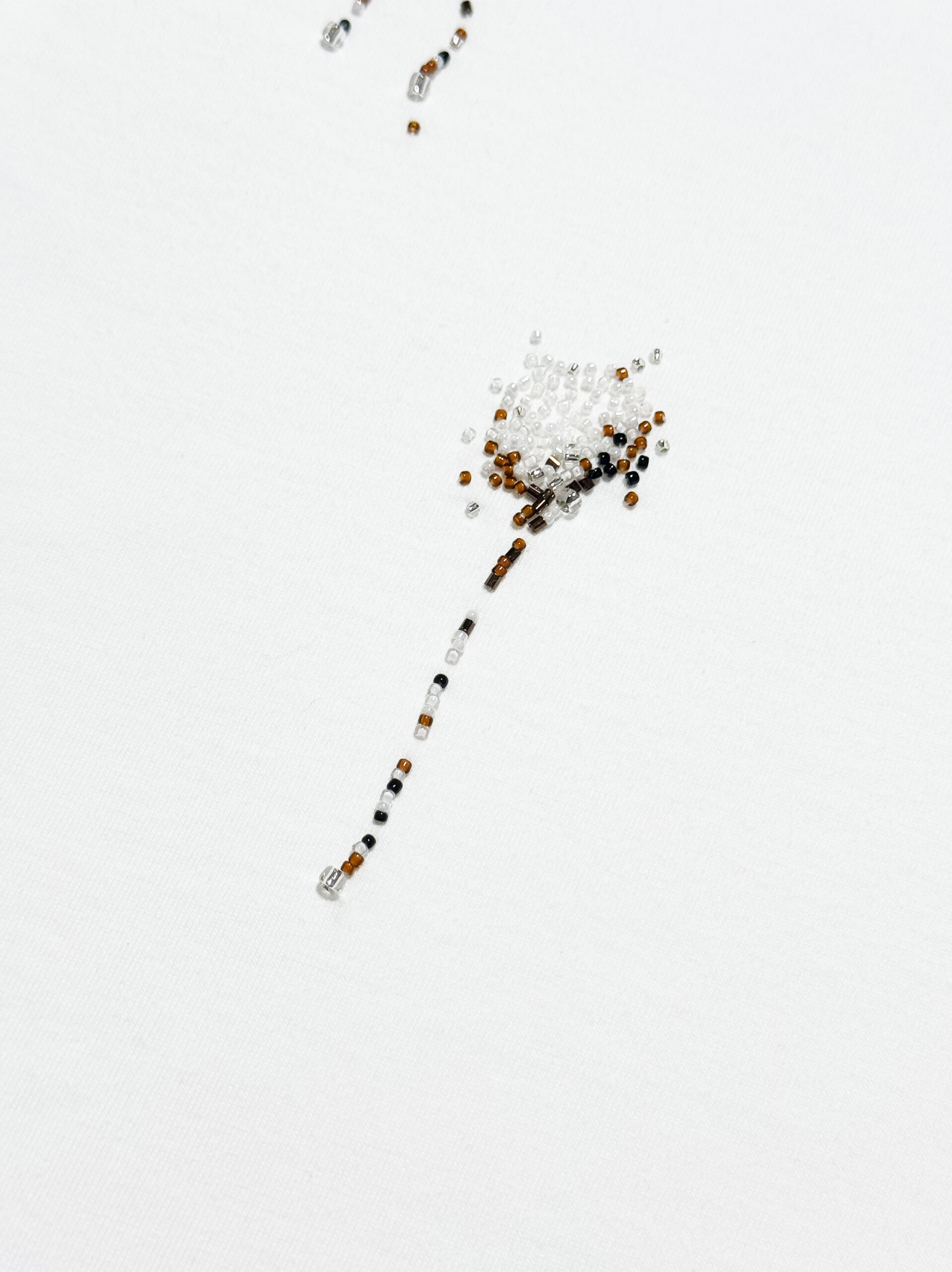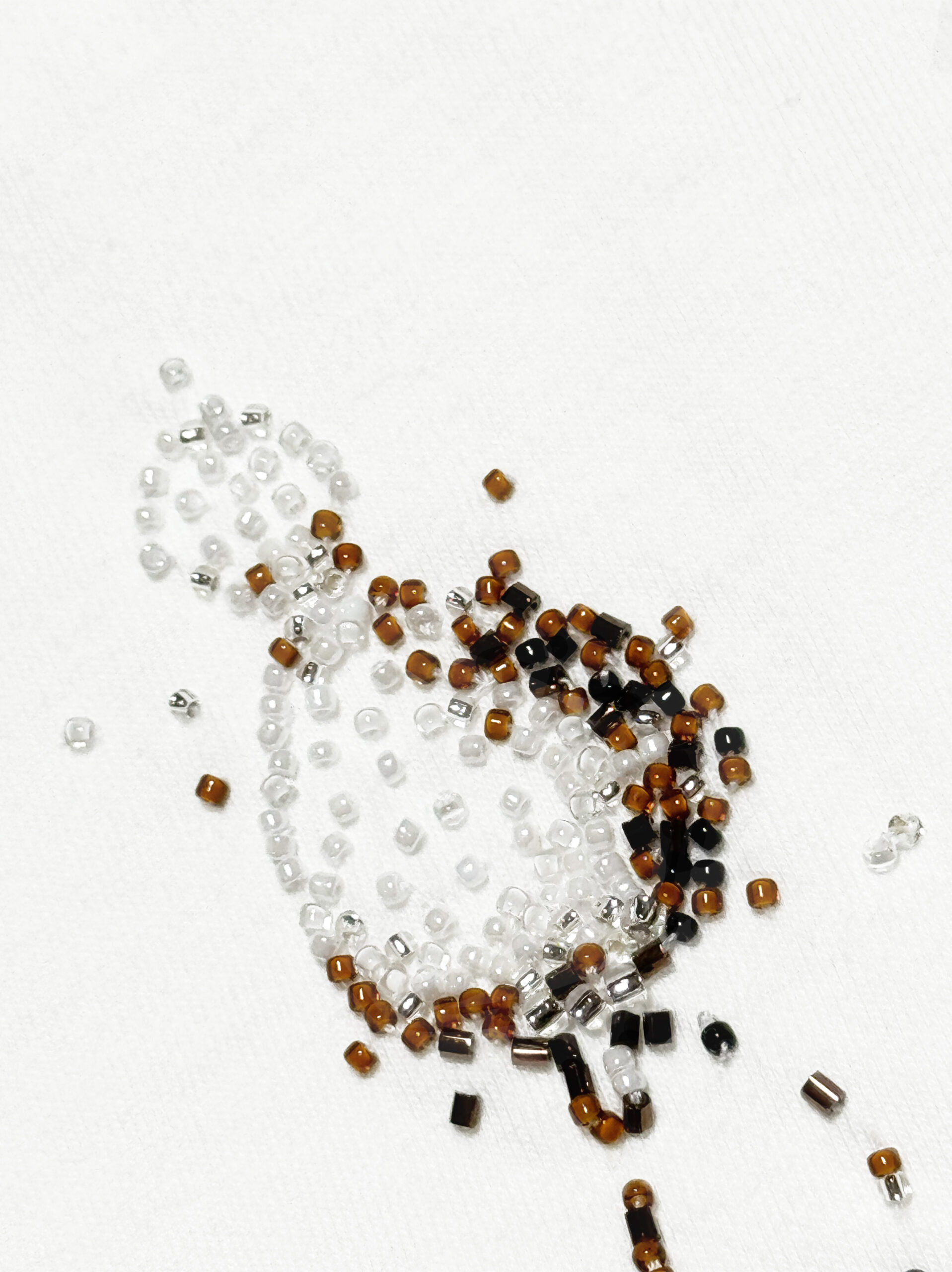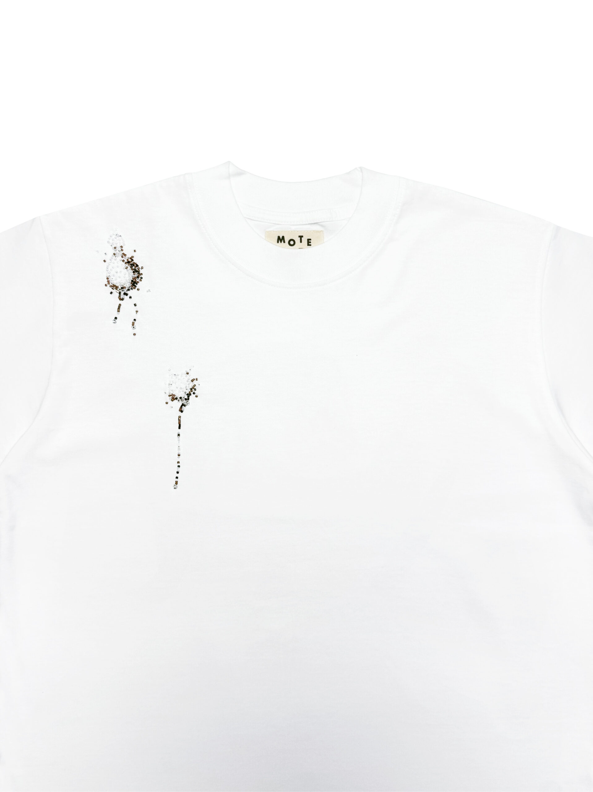 Oversized cut crew neck Tee in soft cotton, made in unisex fitting. Adorned with playful vibrant hand-beaded details in collaborative materials.