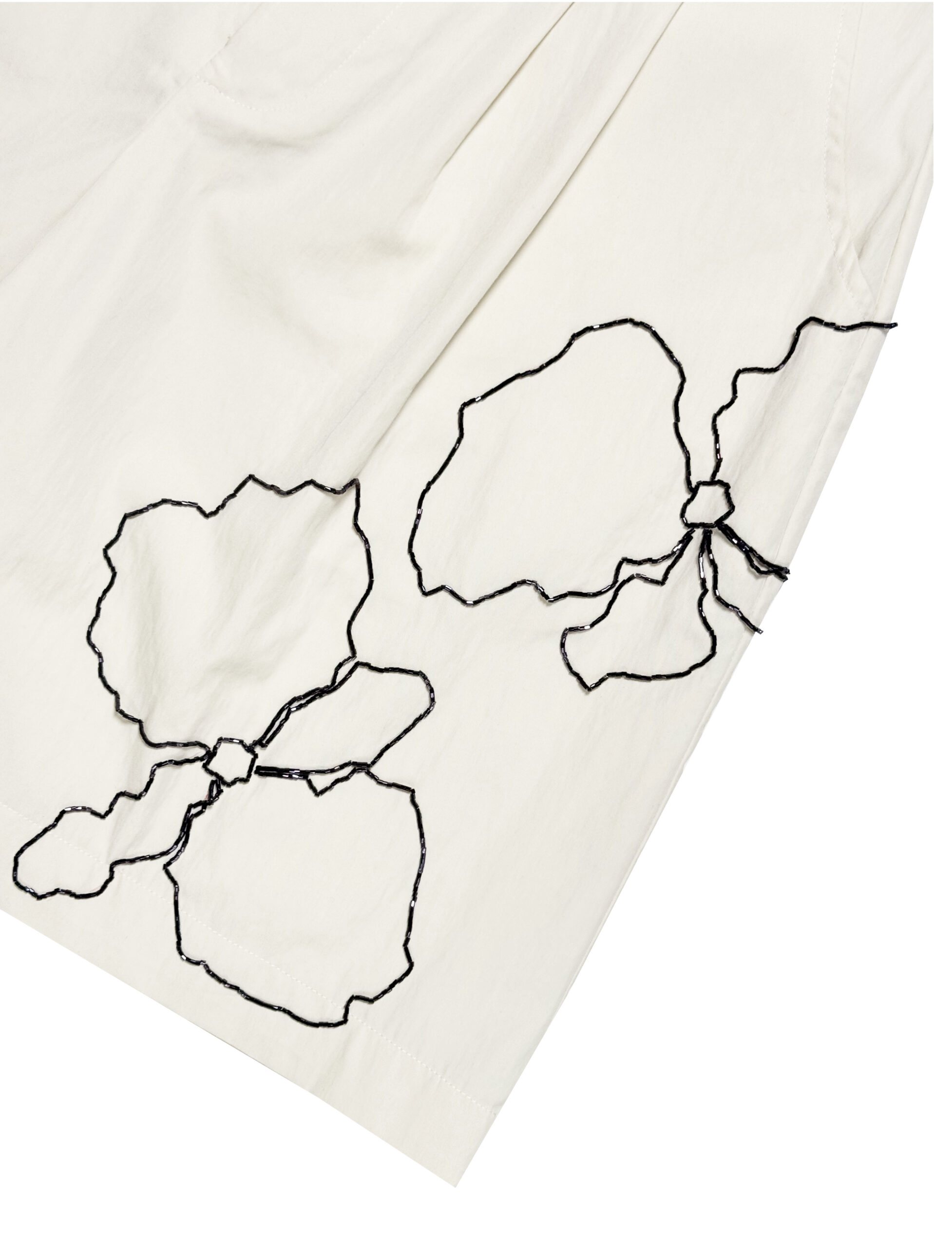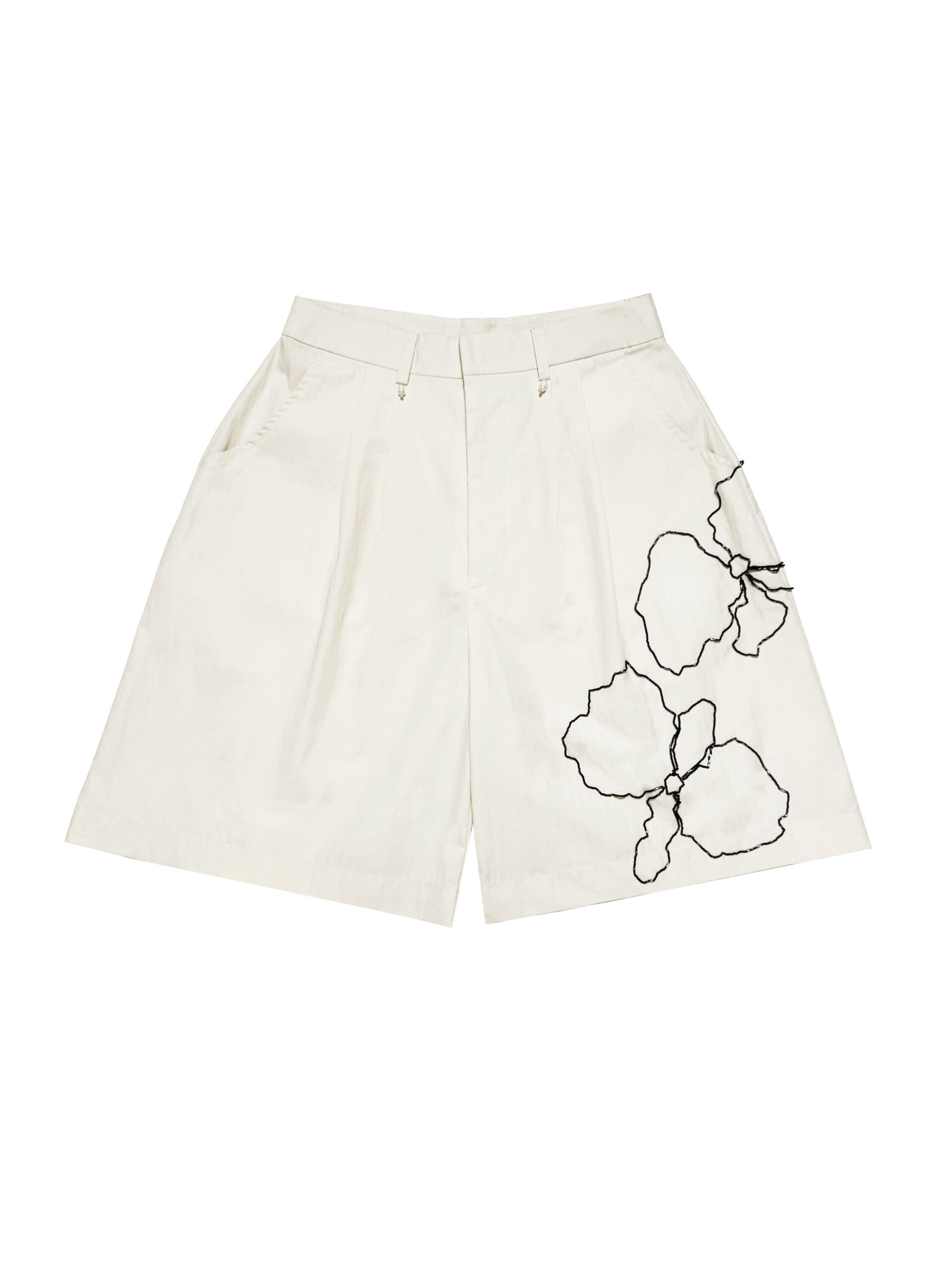 Wide-leg bermuda shorts constructed in mid rise length with belt loops, finished with hook, zip fly fastening and double front & back pockets. Adorned with hand-beaded embellishment details for a subtle pop.