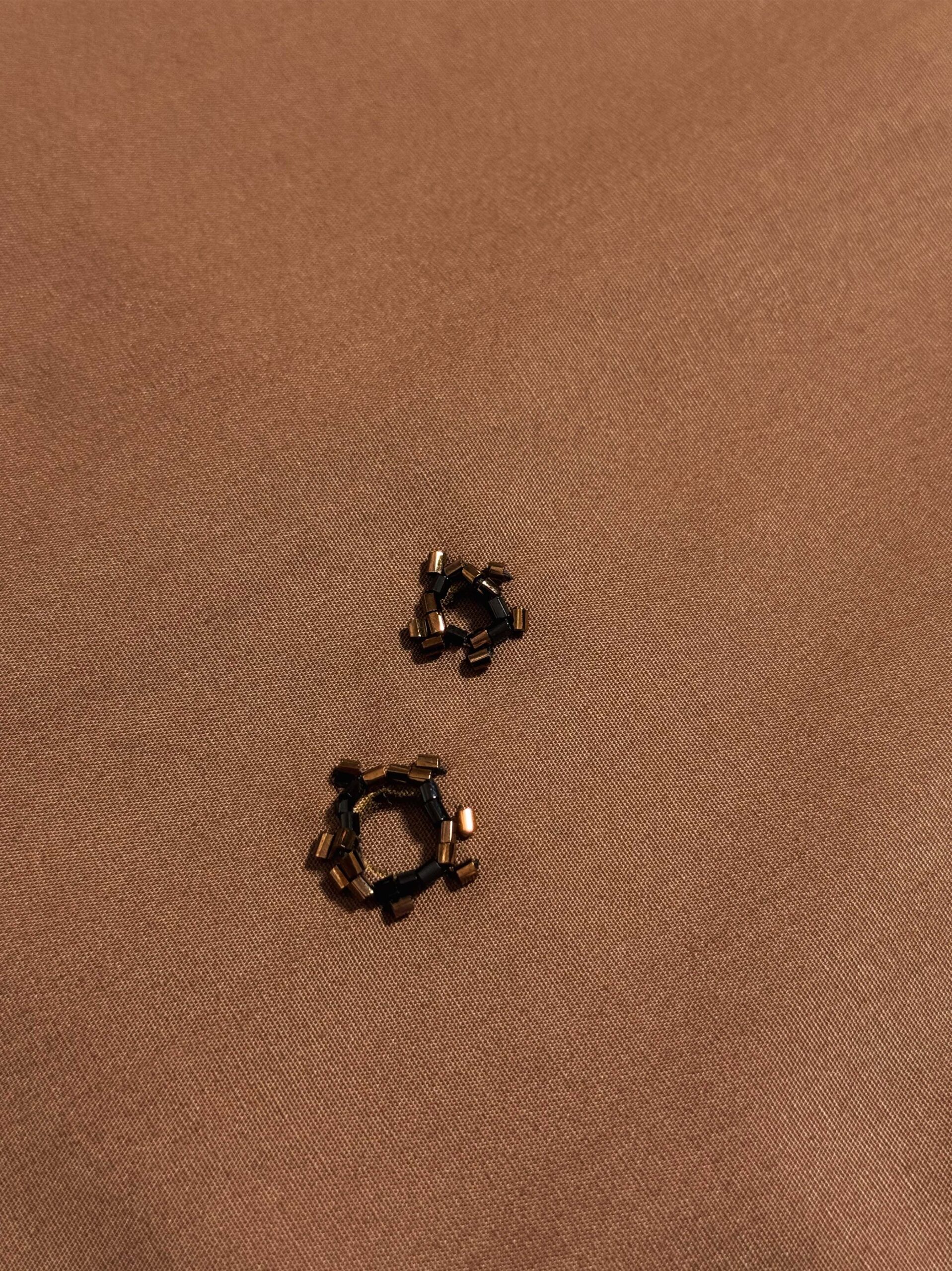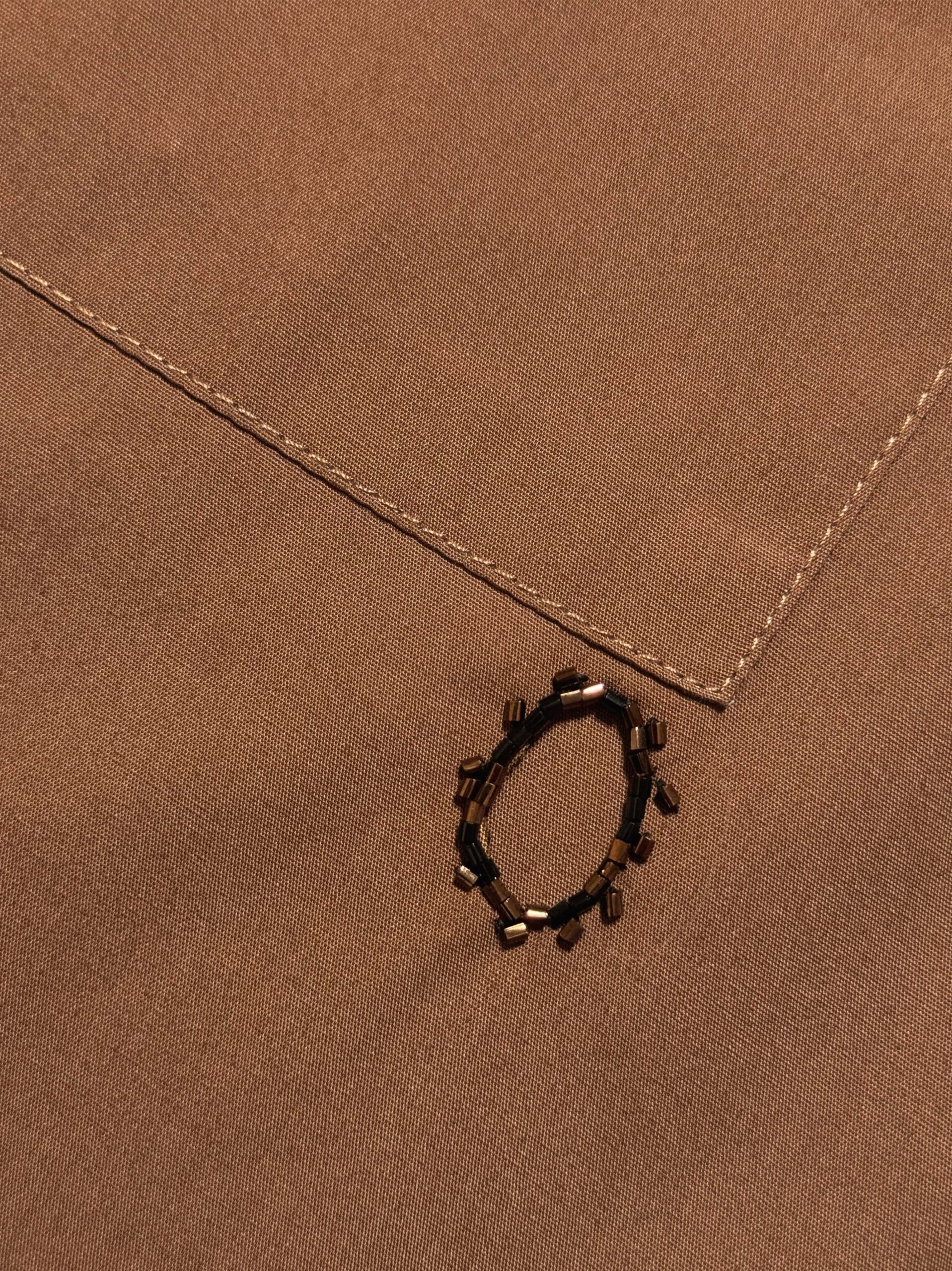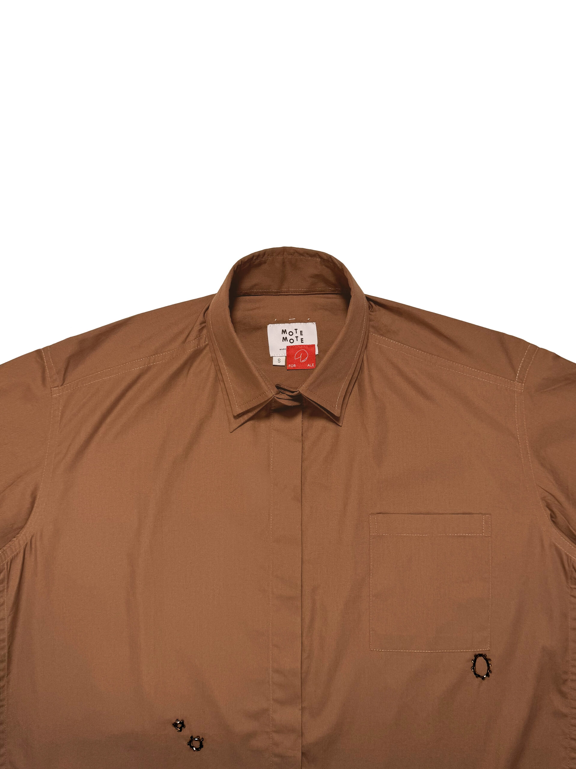 Constructed of double collared details, made in unisex fitting. Adorned with hand-beaded embellishments on the collar, neatly finished with Mote Mote’s embossed transparent buttons.