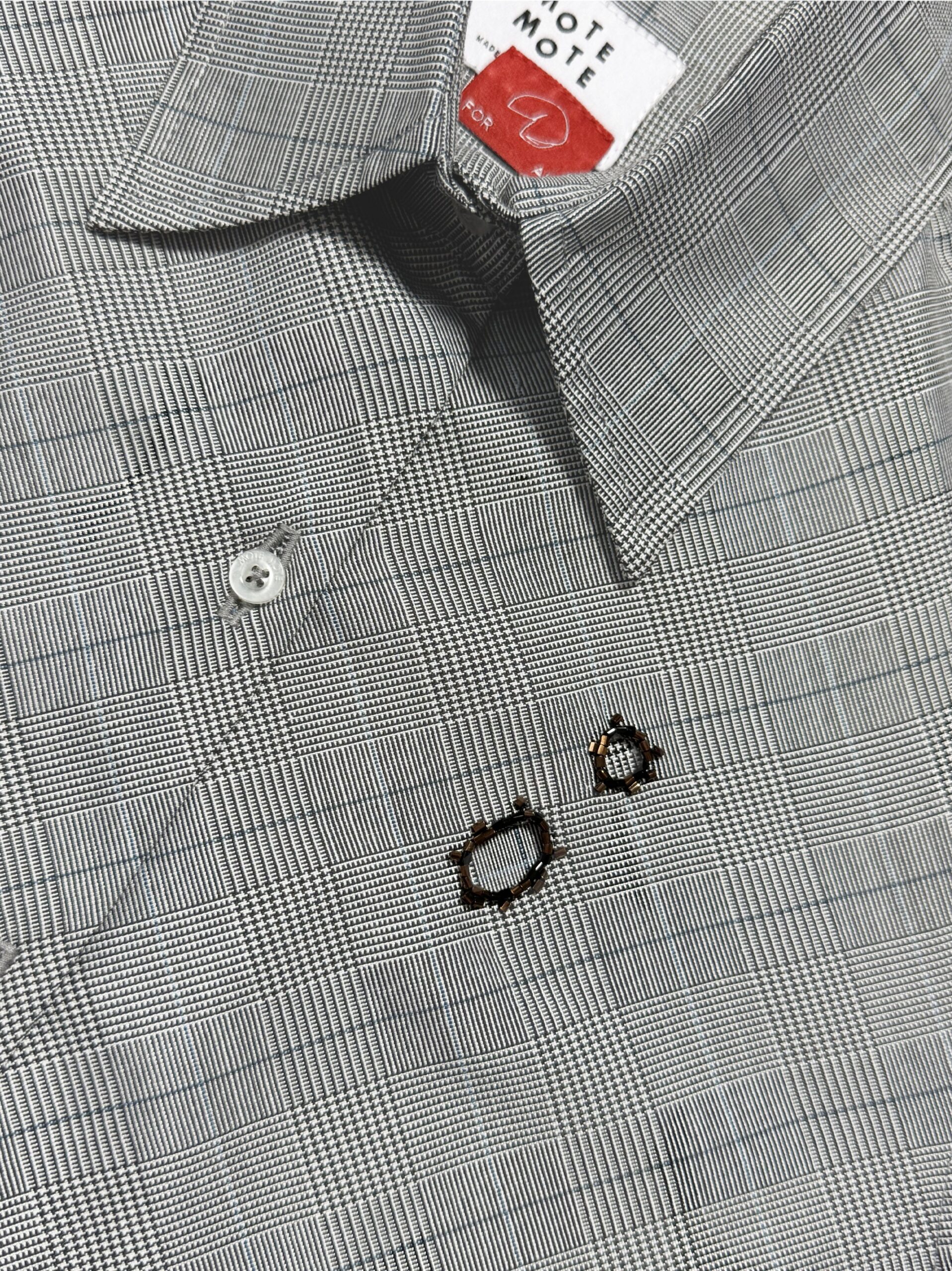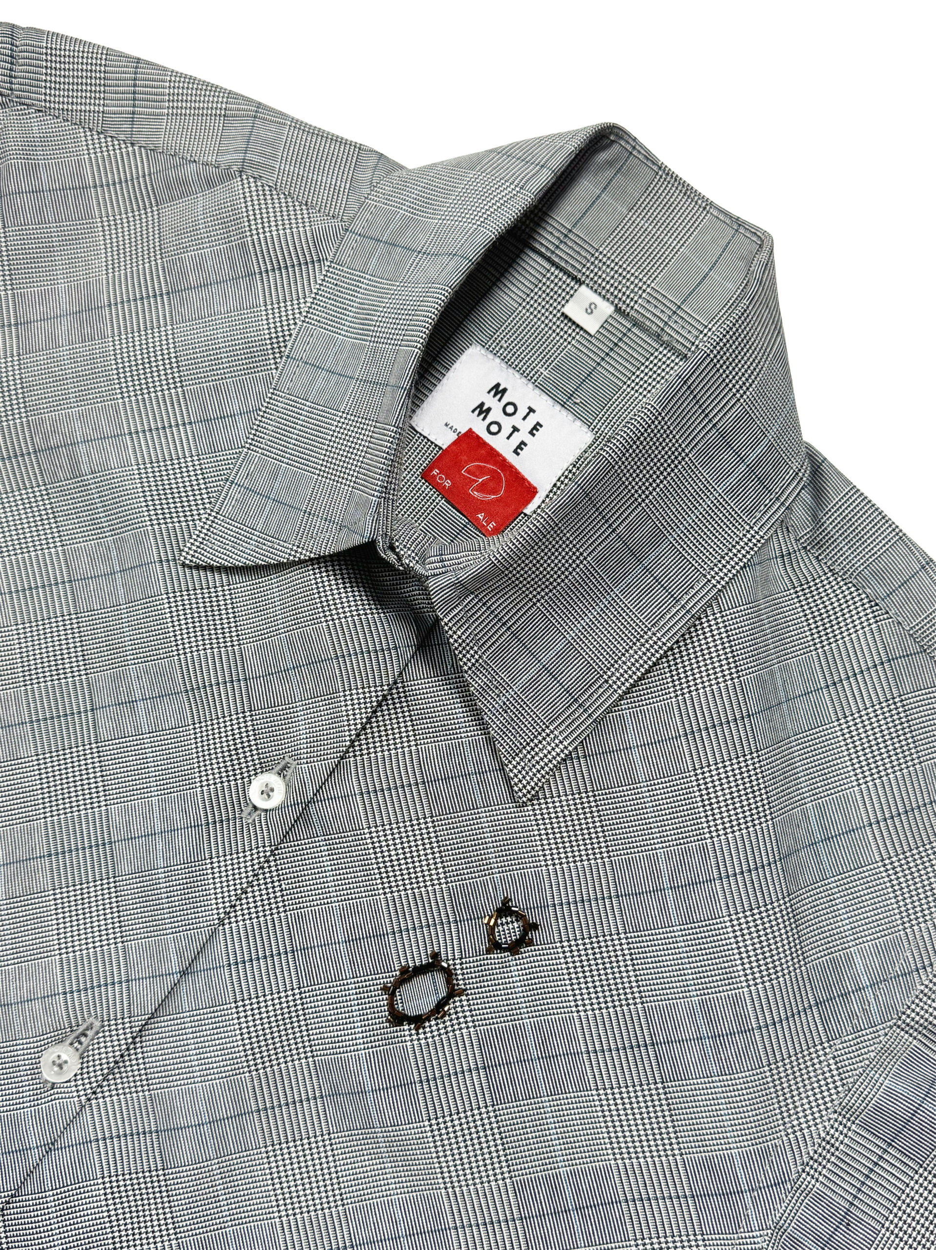 Classic long-sleeve shirt with unisex cut. Featuring standard cuffs with red accent stitching, relaxed straight fit and bead embellishment that tells a story. Finished with signature Mote Mote buttons.