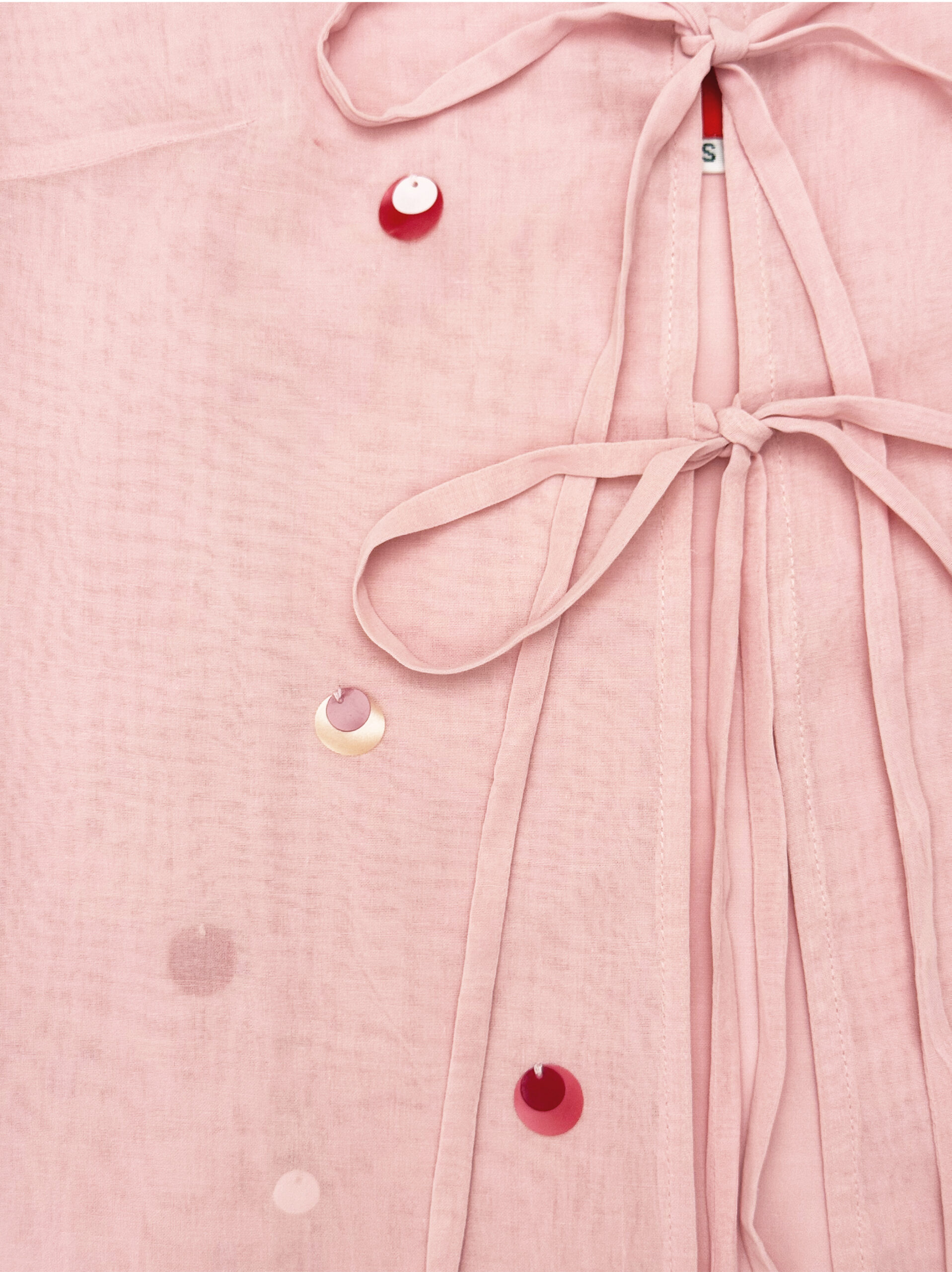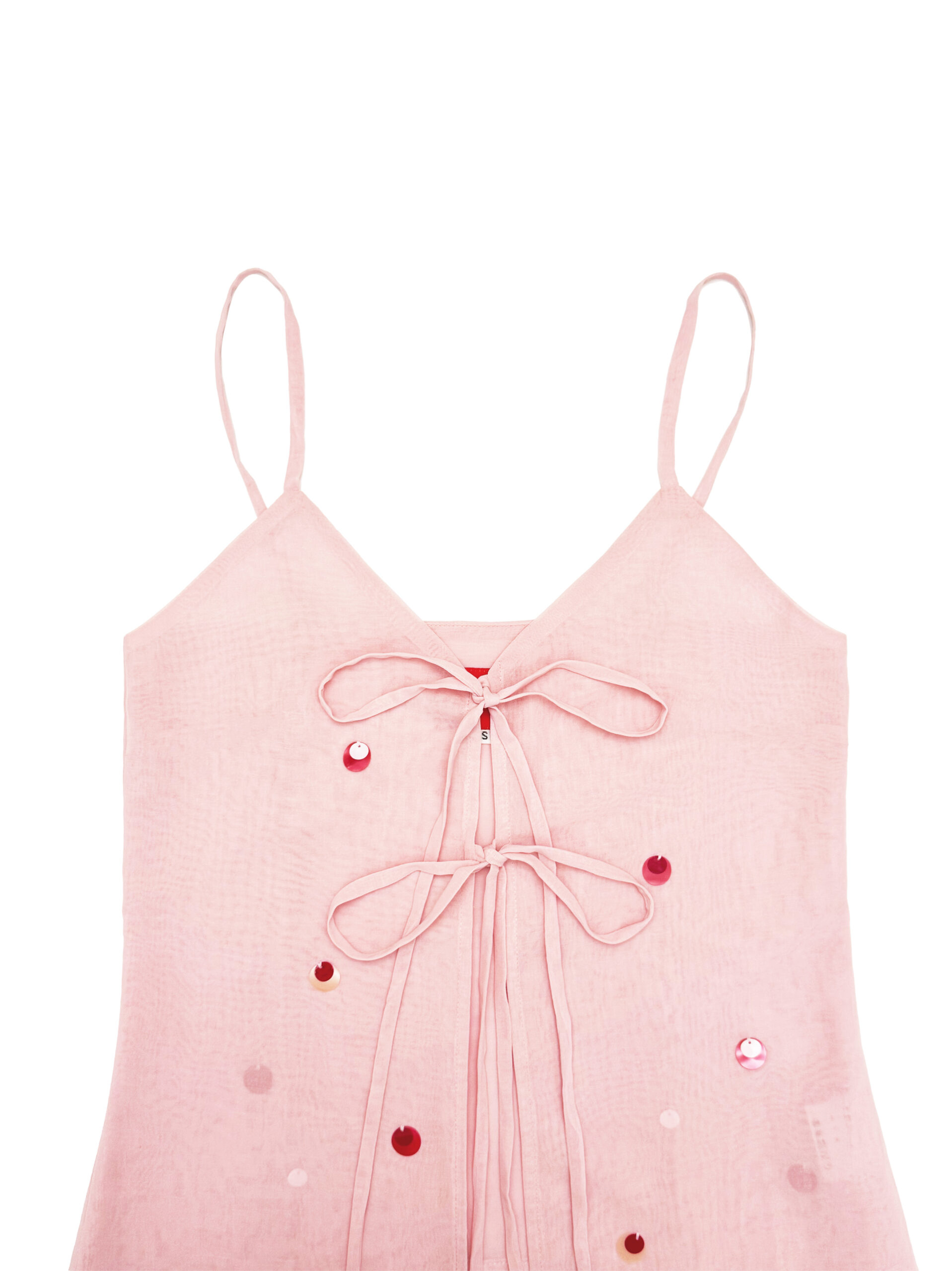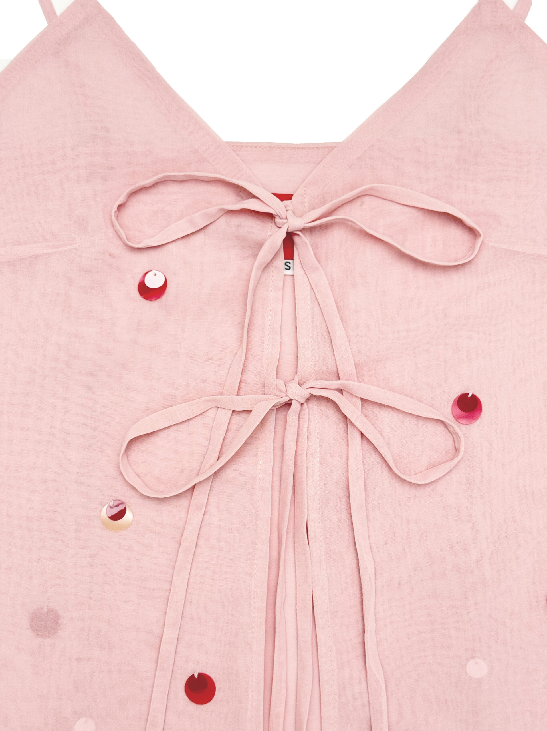 Two layers vest/tanktop with adjustable strap and front tie opening for extra comfort, adorned with hand-beaded & sequin detailings.