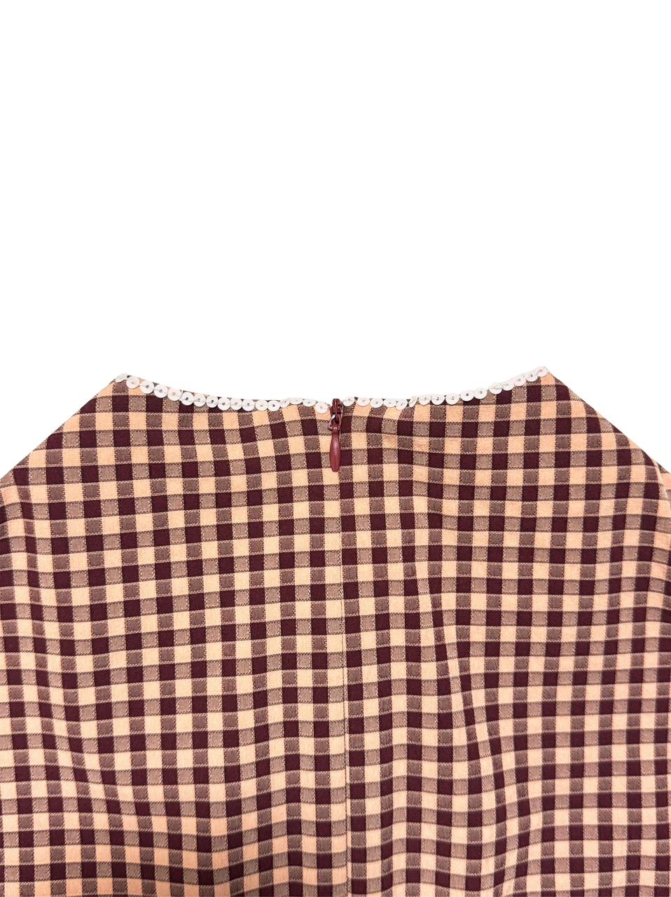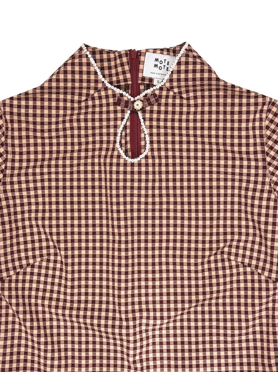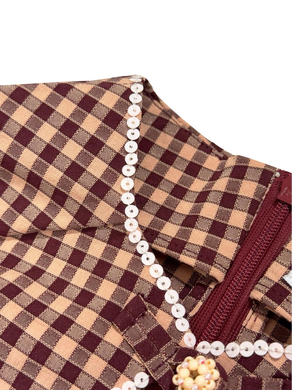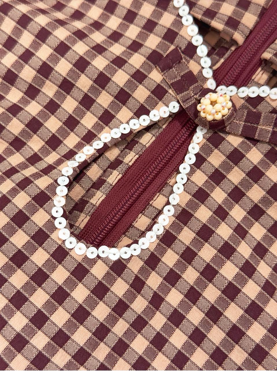 This lightweight fitted top features a modern cheongsam neckline detailing and hand-embellished trimmings and a beaded button ornament on the center front.