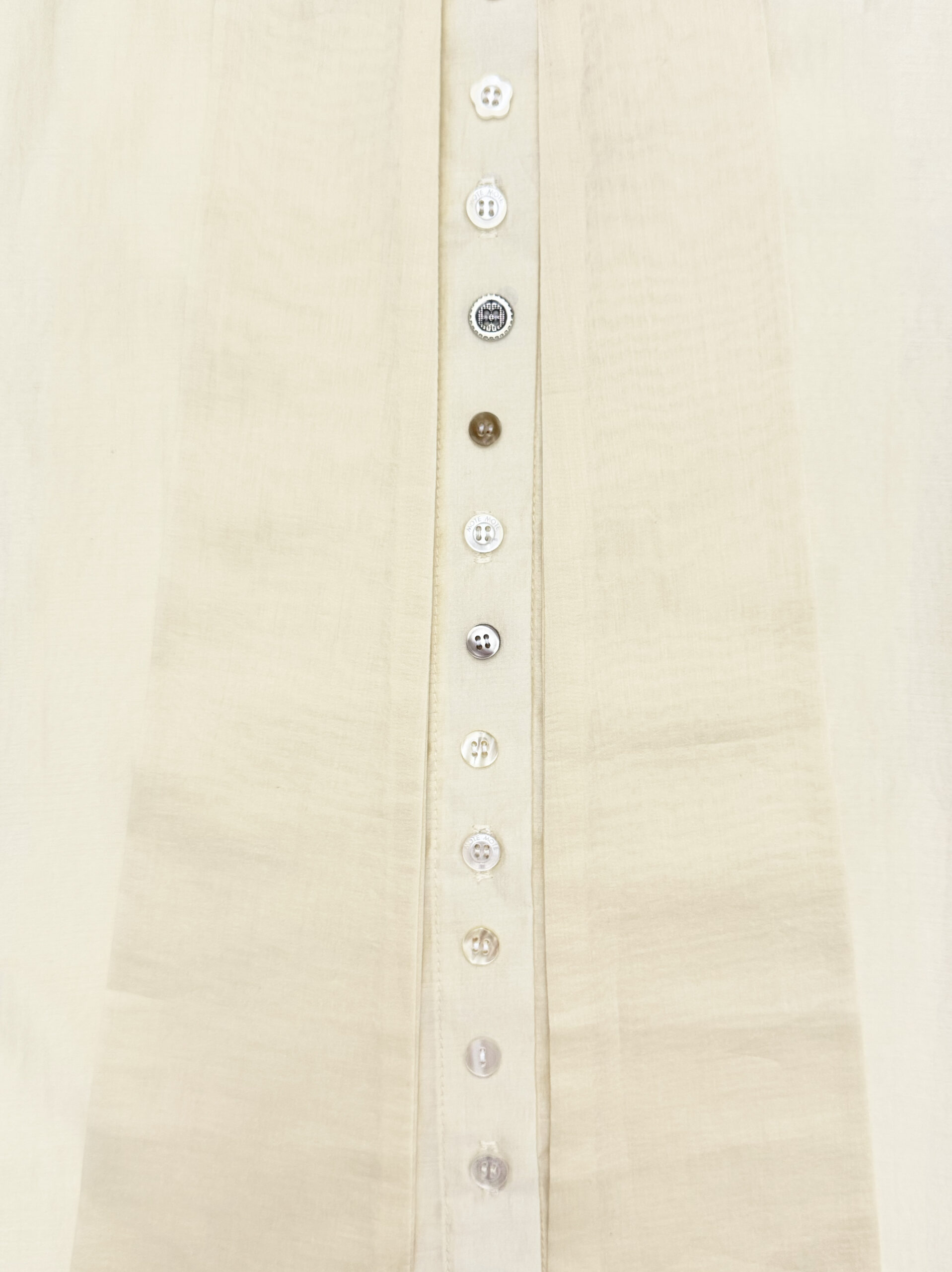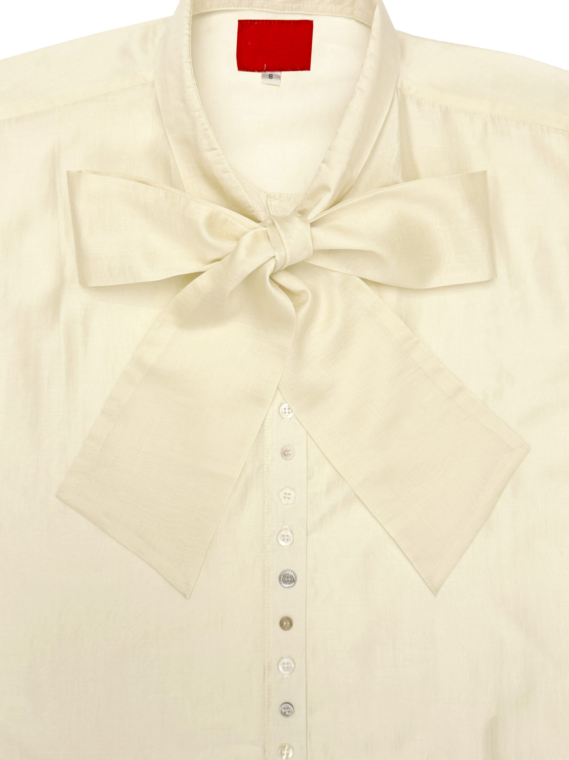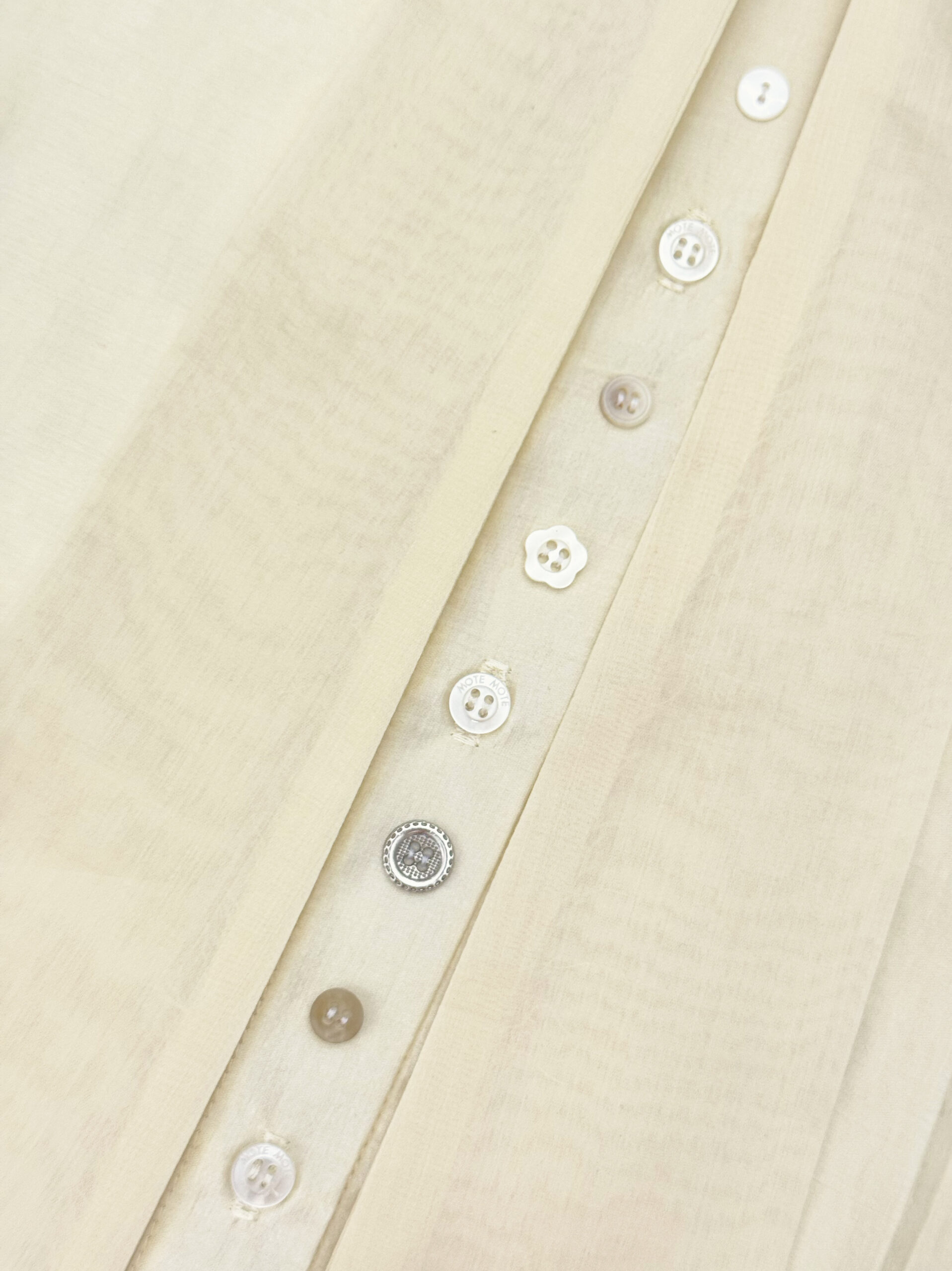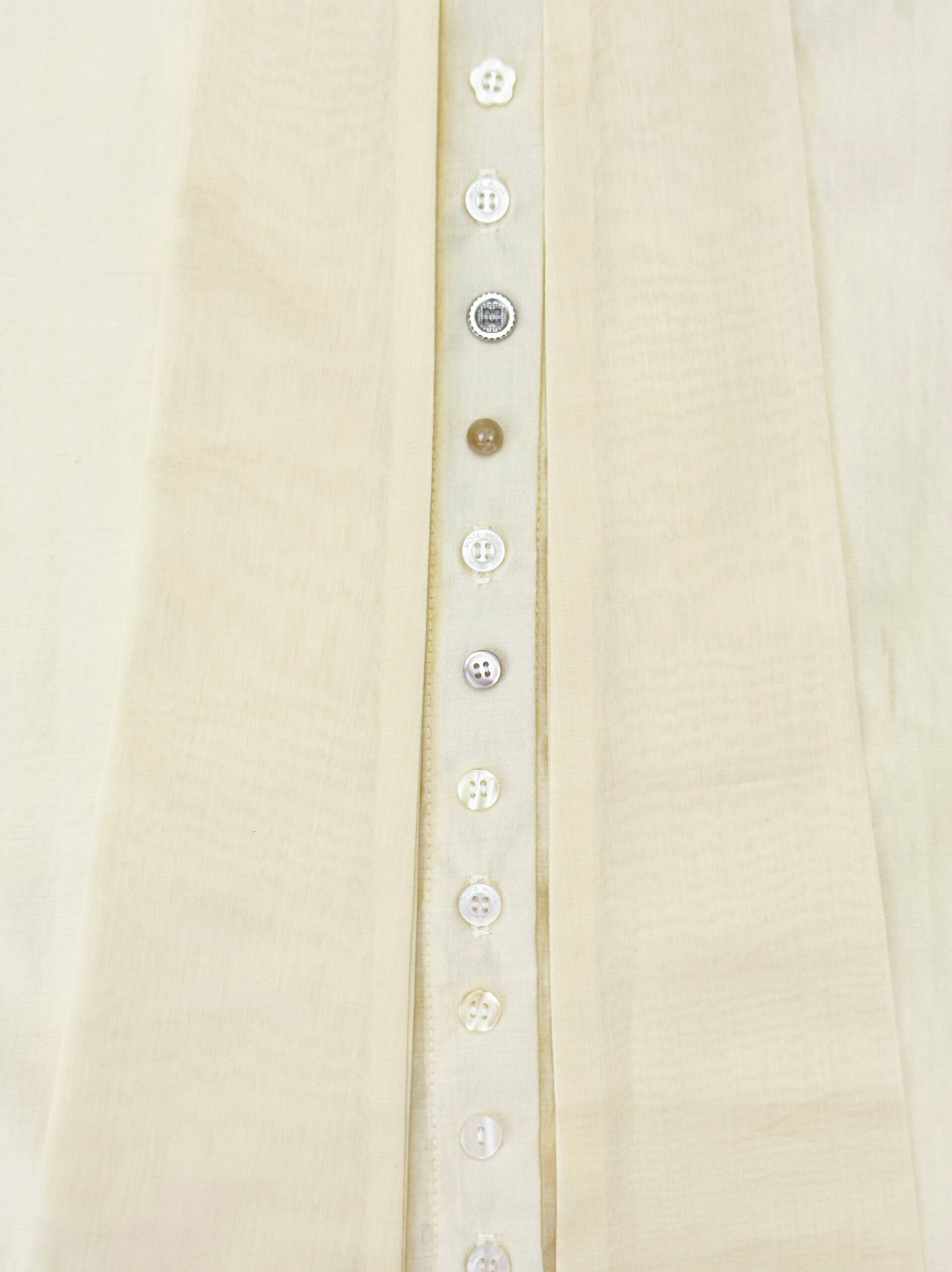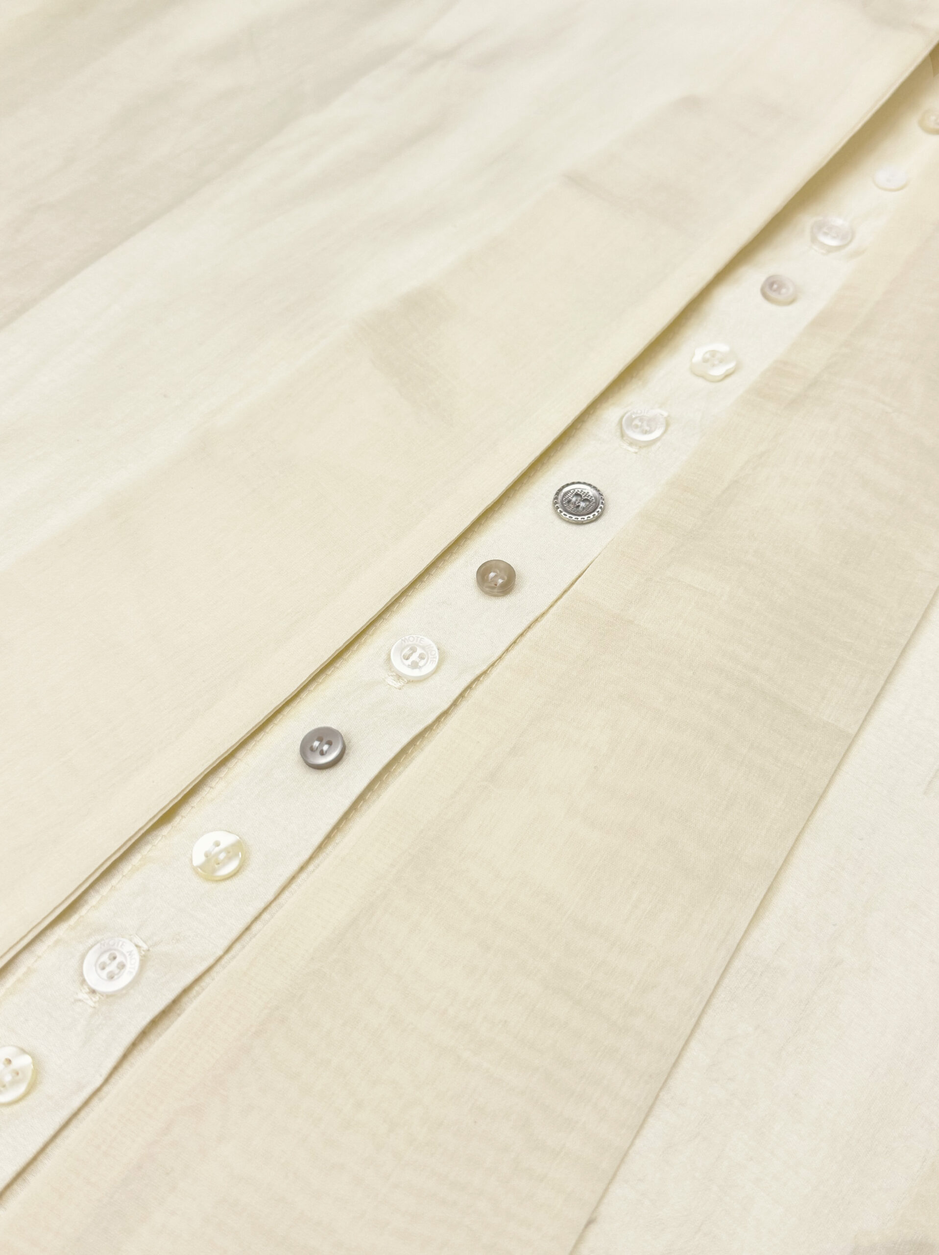 Constructed of poplin fabric, with asymmetric buttoning & bowtie details, made in unisex fitting. Adorned with hand-beaded embellishments on the collar, neatly finished with Mote Mote’s embossed transparent buttons.