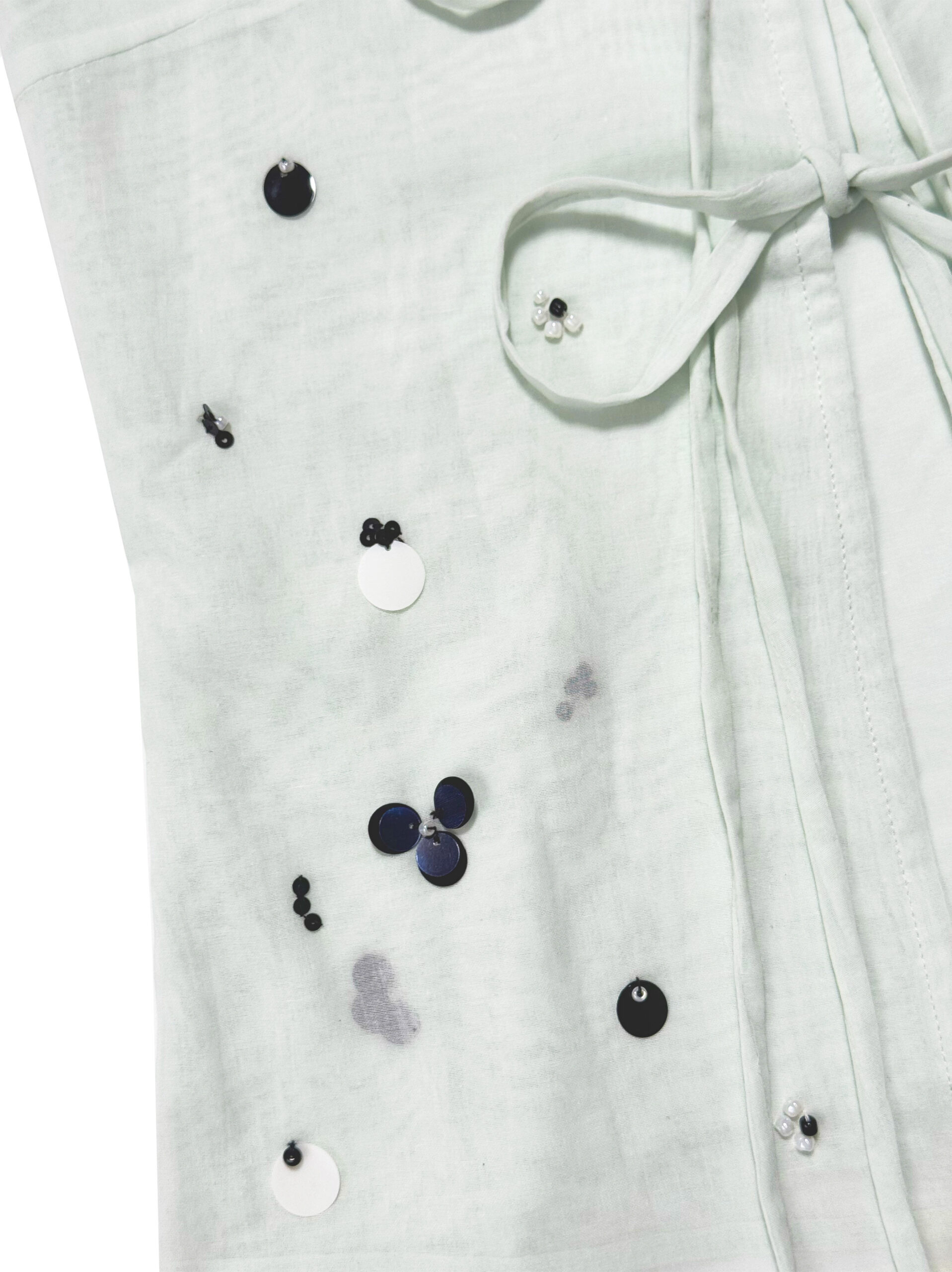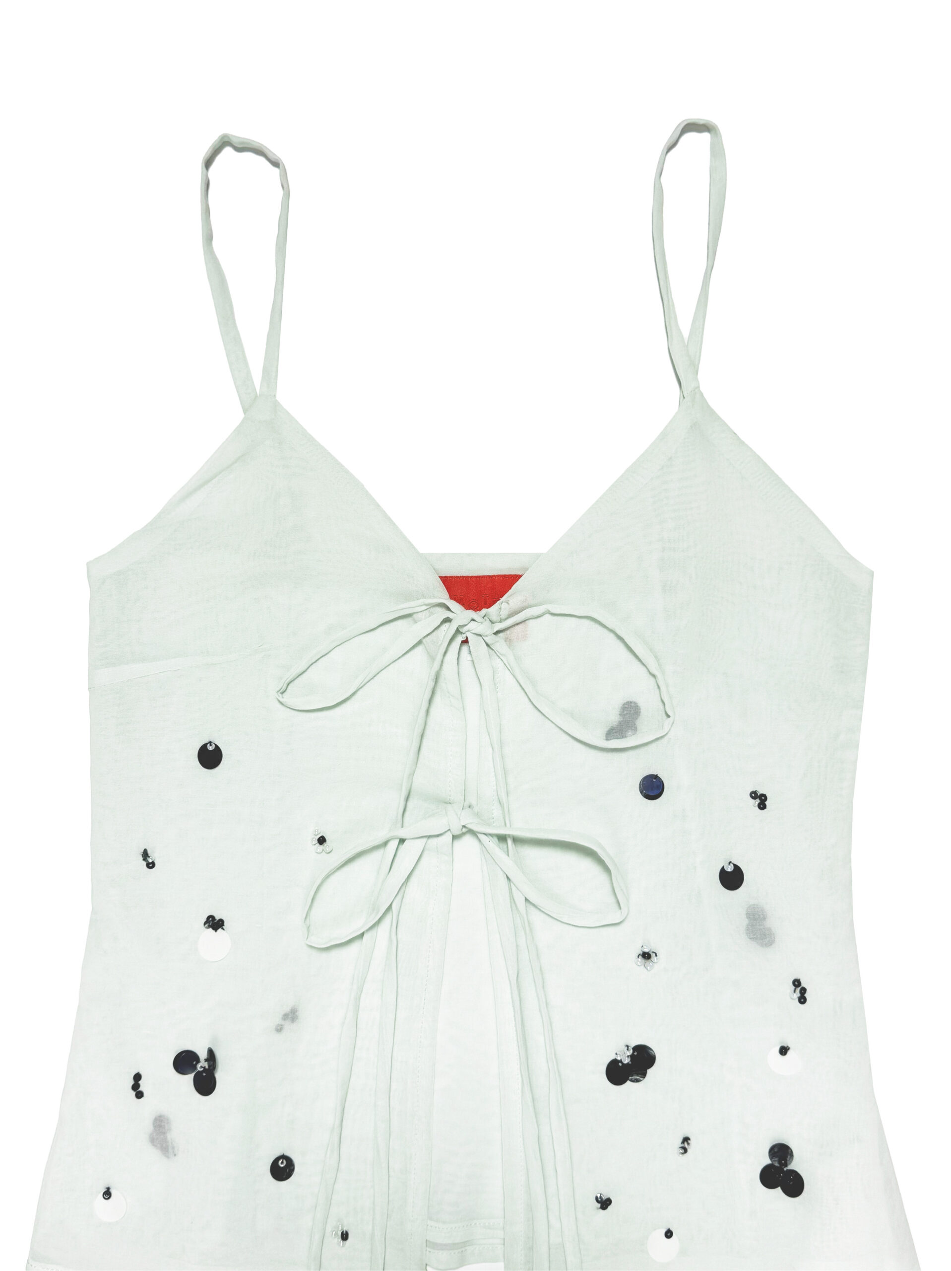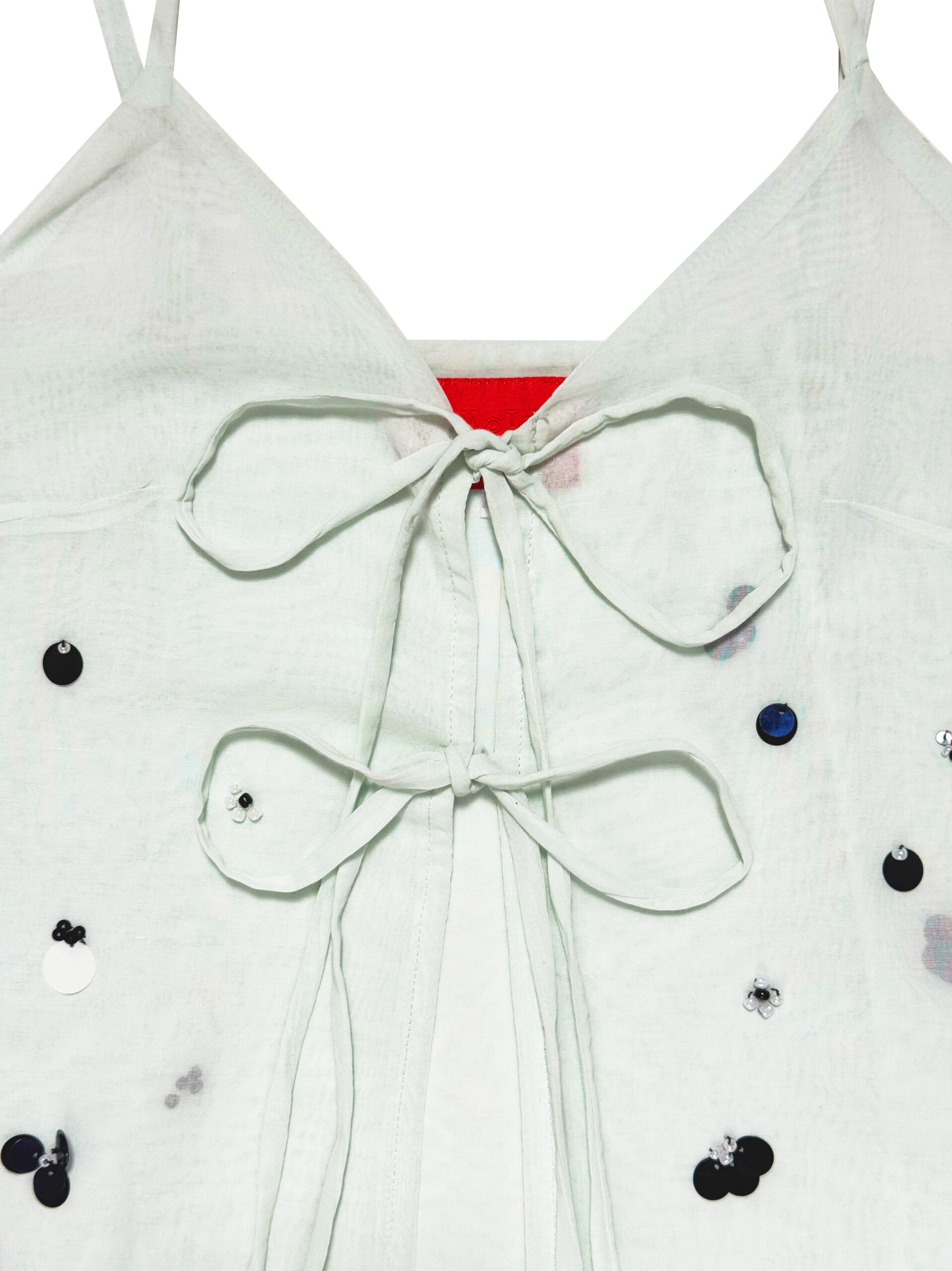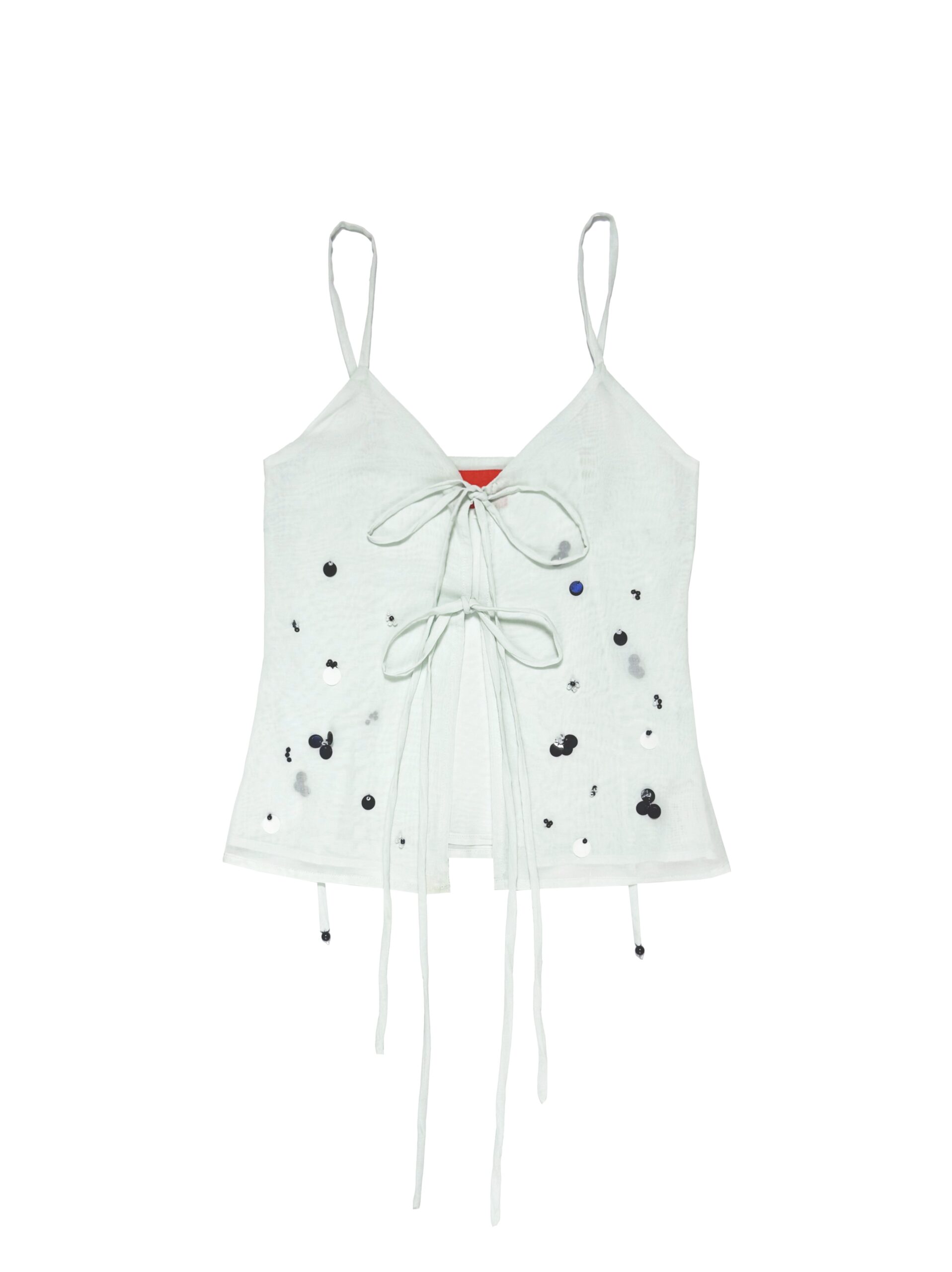 Two layers vest/tanktop with adjustable strap and front tie opening for extra comfort, adorned with hand-beaded & sequin detailings.