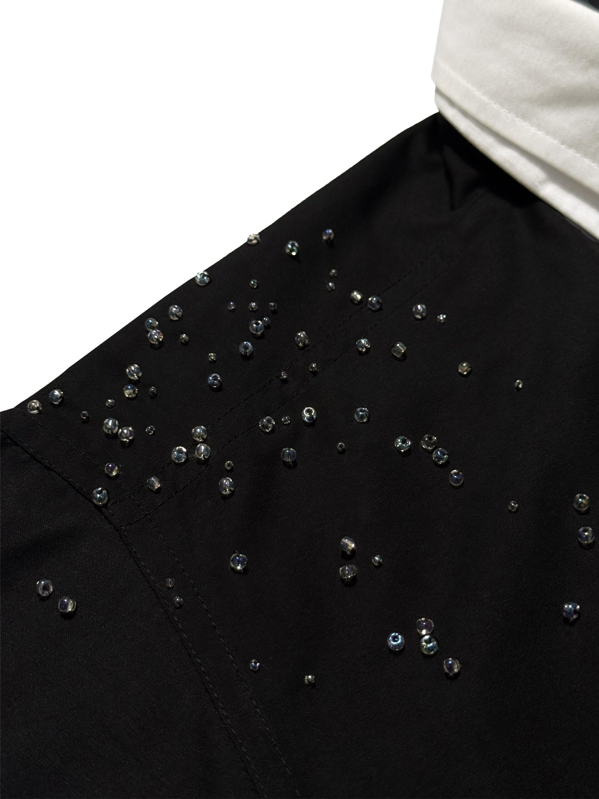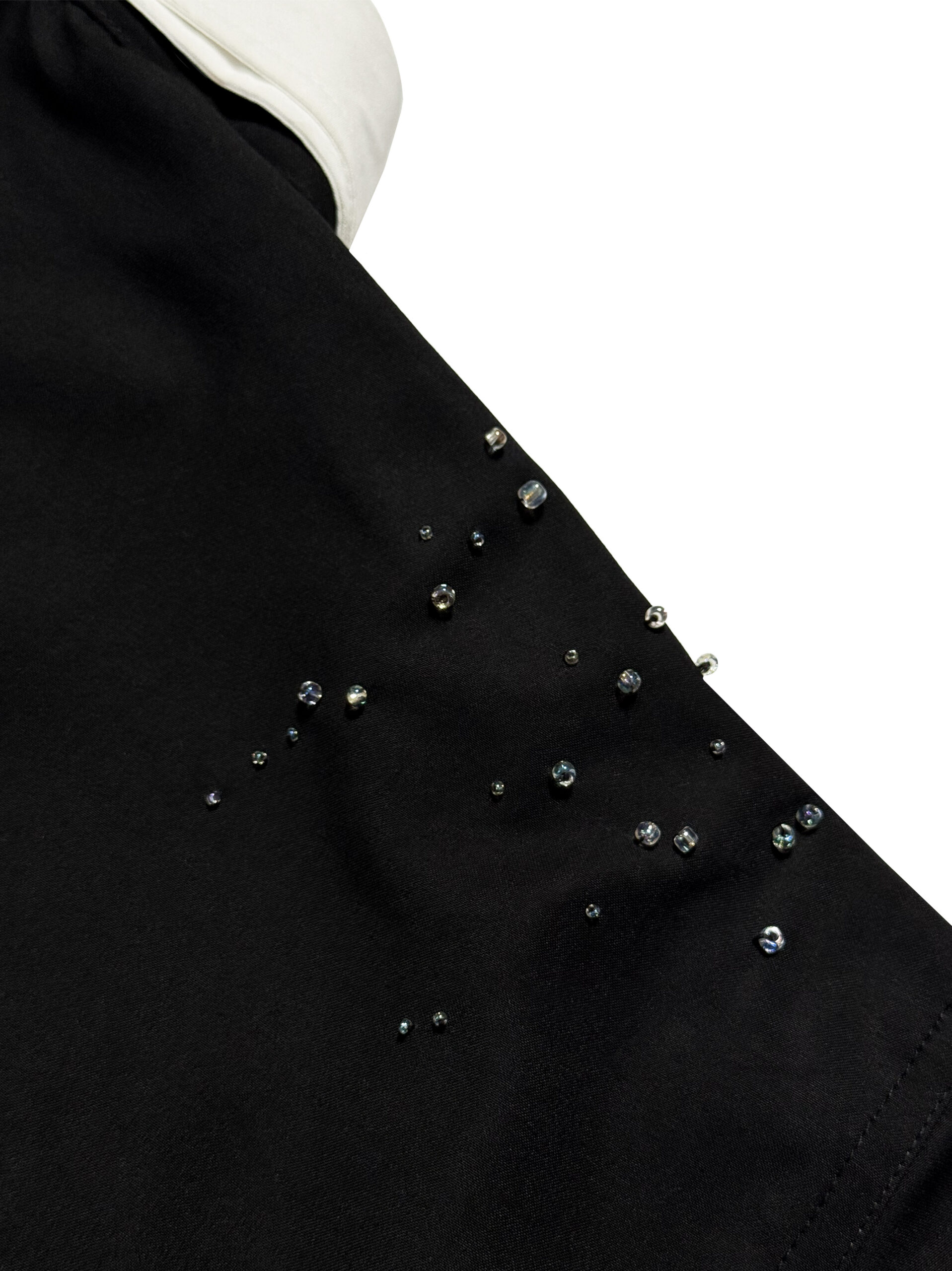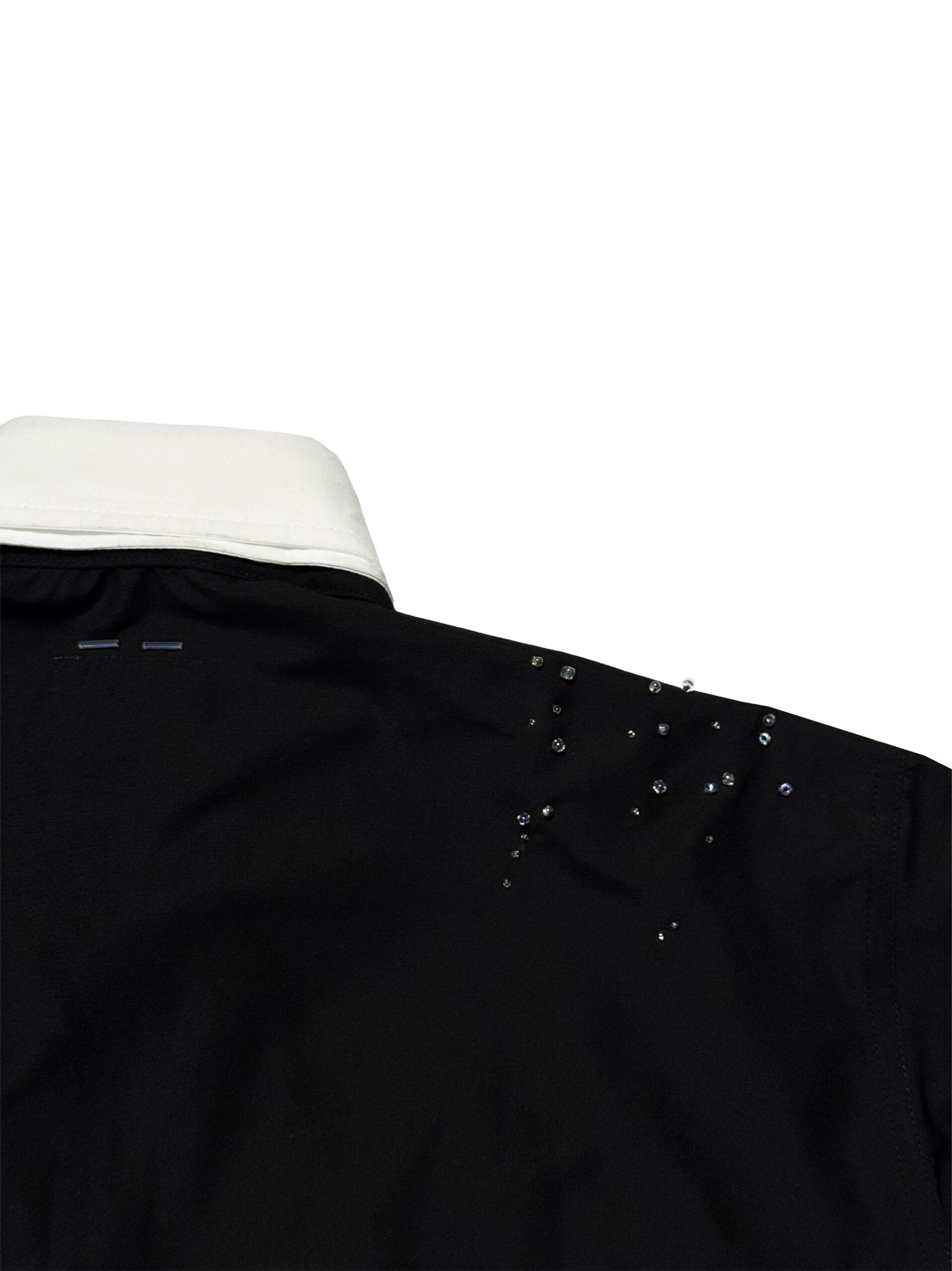 Constructed of double collared details, made in unisex fitting. Adorned with hand-beaded embellishments on the collar, neatly finished with Mote Mote’s embossed transparent buttons.