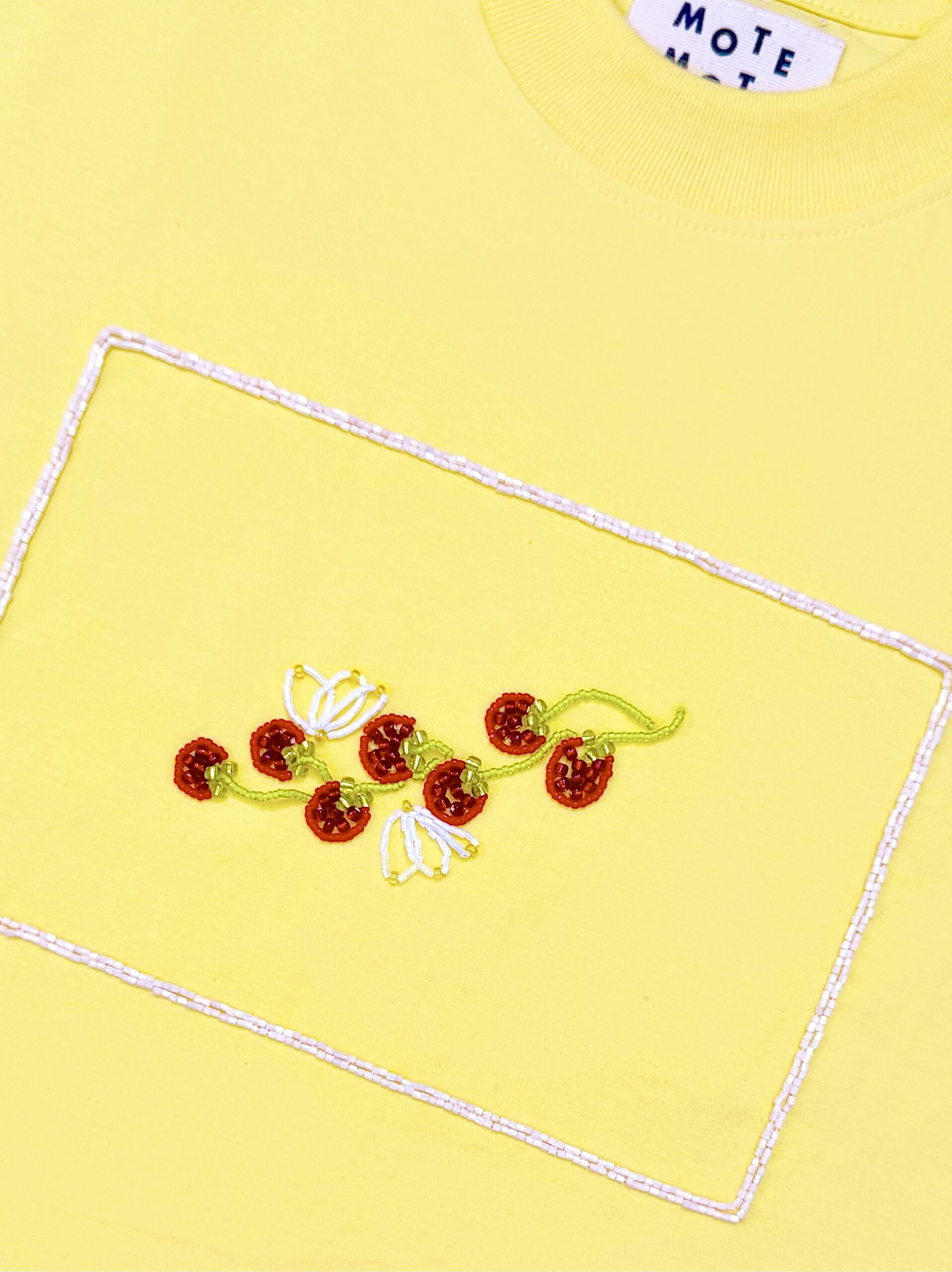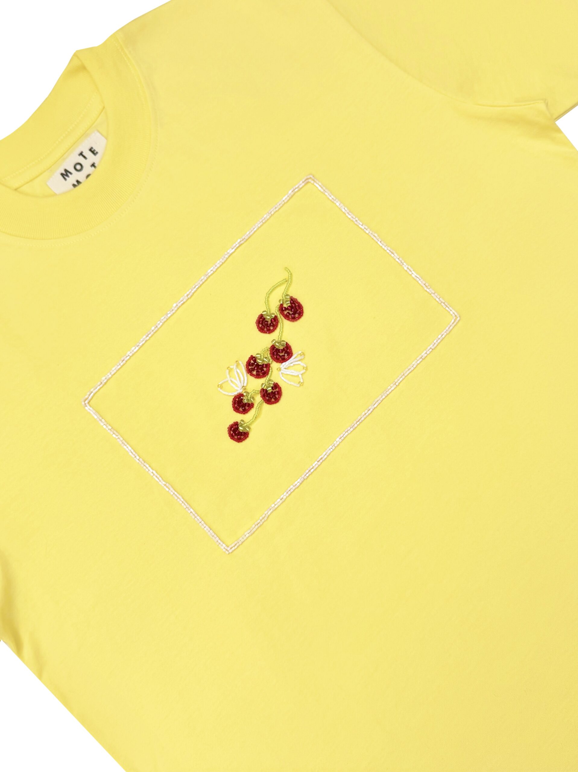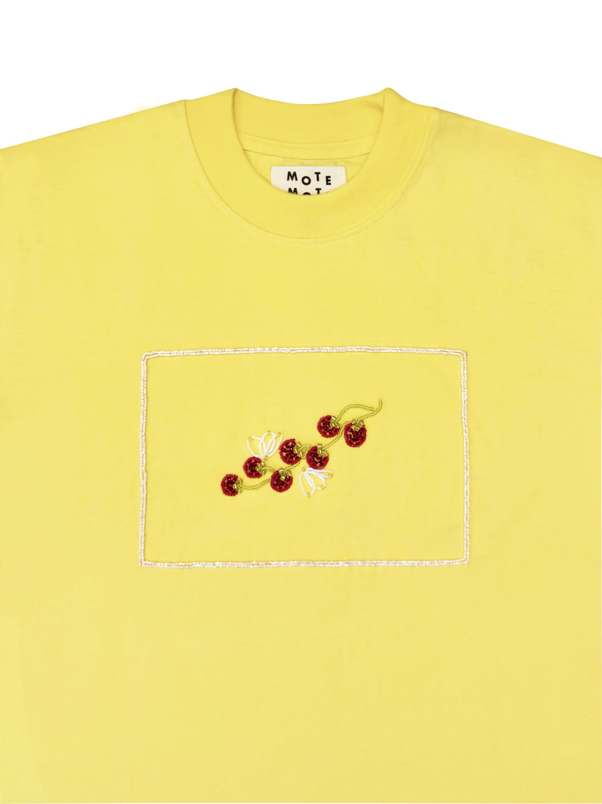 Oversized cut crew neck Tee in soft cotton made in unisex fitting. Adorned with Mote Mote’s hand-beaded detailing.