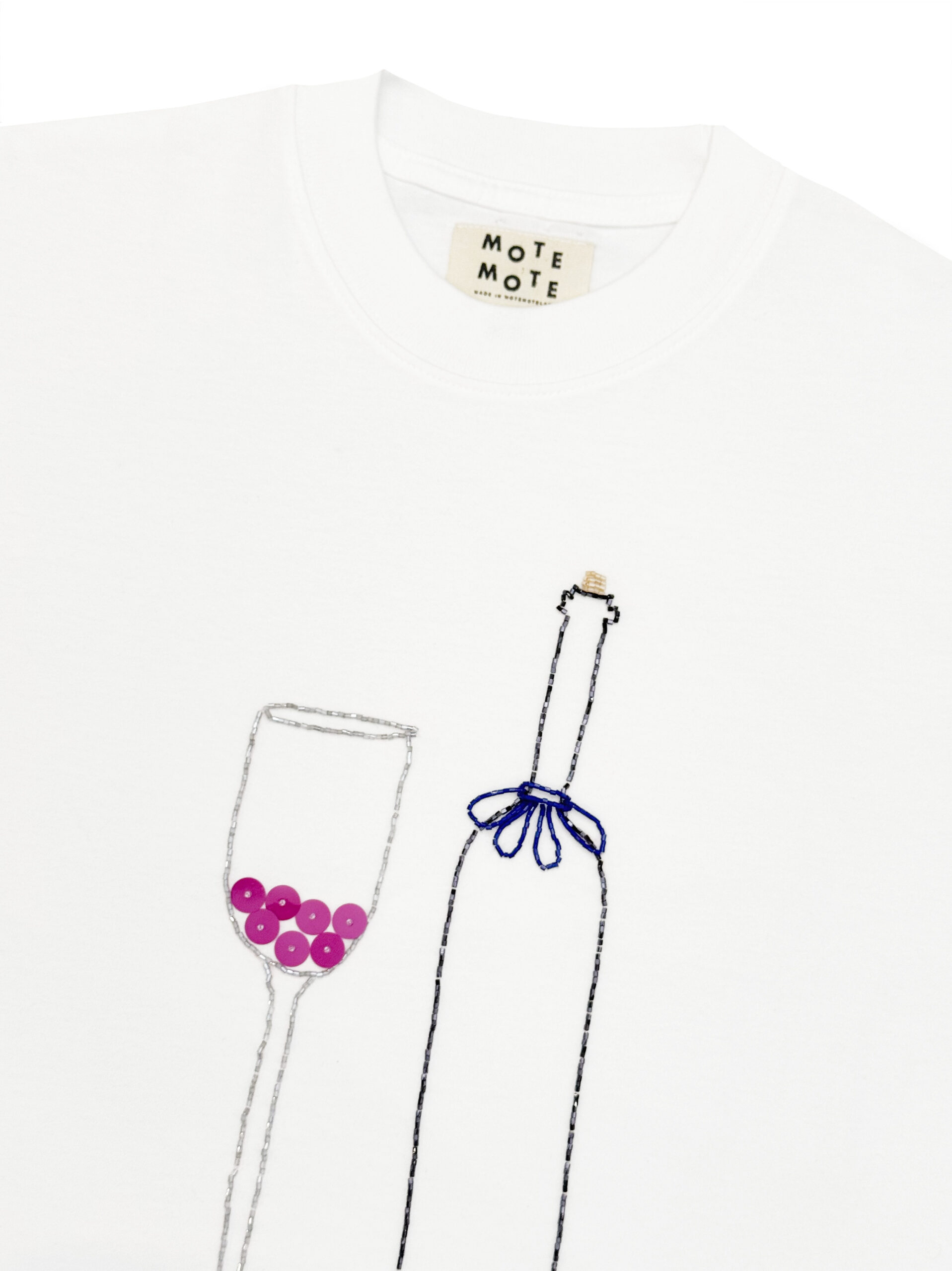 Oversized cut crew neck Tee in soft cotton made in unisex fitting. Adorned with Mote Mote’s hand-beaded detailing.